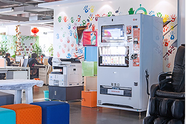 友寶已與杭州支付寶近2500名員工相伴一年。支付寶辦公區內,數十臺臺售貨機7*24小時守候,提供最貼心可靠的飲料零食及盒飯服務。 智能的友寶還為支付寶量身定制了諸多便利功能:如支持支付寶員工卡購買、接入支付寶最新的聲波支付技術等。